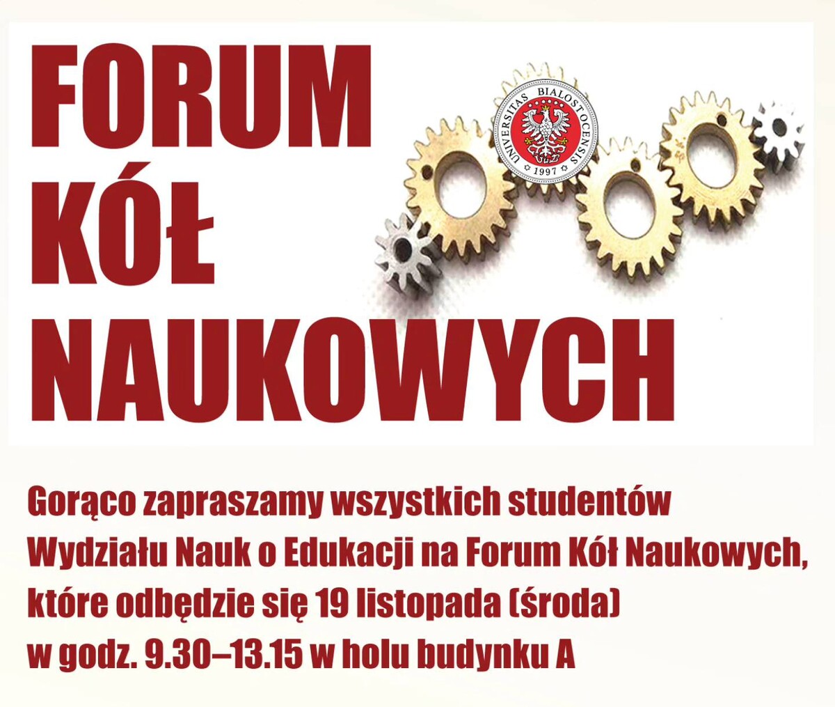 Serdecznie zapraszamy wszystkich studentów Wydziału Nauk o Edukacji na II Forum Kół Naukowych, które odbędzie się 19 listopada (środa) w godz. 9:30 -13.15 w holu budynku A!