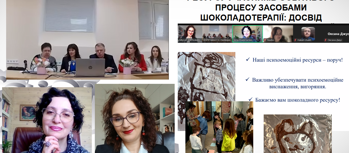 „Przywracanie zasobów psychoemocjonalnych uczestników procesu edukacyjnego z wykorzystaniem czekoladoterapii: doświadczenia z Polski i Ukrainy” – to temat wykładu wygłoszonego przez prof. dr hab. Innę Osadchenko oraz dr hab. Annę Młynarczuk-Sokołowską, prof. UwB podczas X Międzynarodowej konferencji naukowo-praktycznej „Psychologiczno-pedagogiczne problemy szkolnictwa wyższego w warunkach współczesnych wyzwań: teoria i praktyka”, zorganizowanej przez Charkowski Narodowy Uniwersytet Pedagogiczny im. H. S. Skoworody.